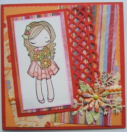 GIRL POWERHetzelfde stempeltje als kaart 1 maar derwent ingekleurd en zoals je ziet een heel ander resultaat. Met weer een martha steward pons een randje gemaakt en je hebt weer een leuk kaart.